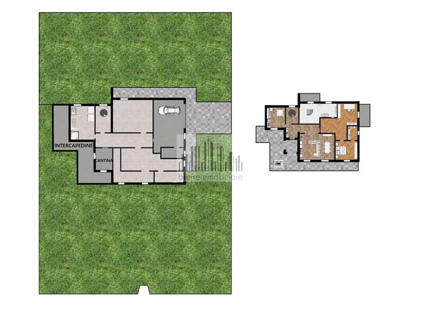 L’immobile è circondato da un giardino privato che si estende sui quattro lati della proprietà, offrendo privacy e ampi spazi esterni vivibili.